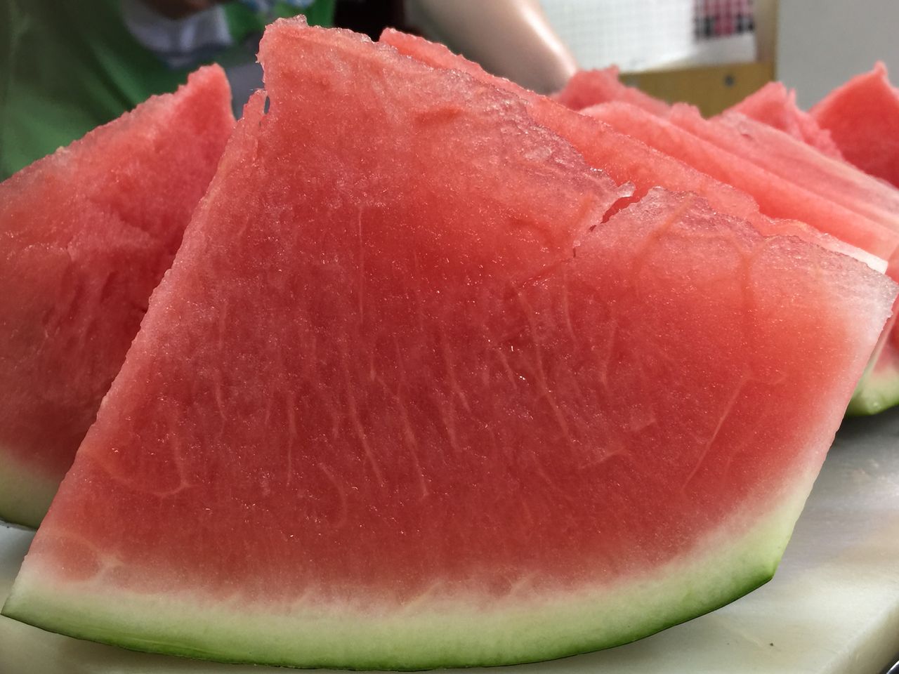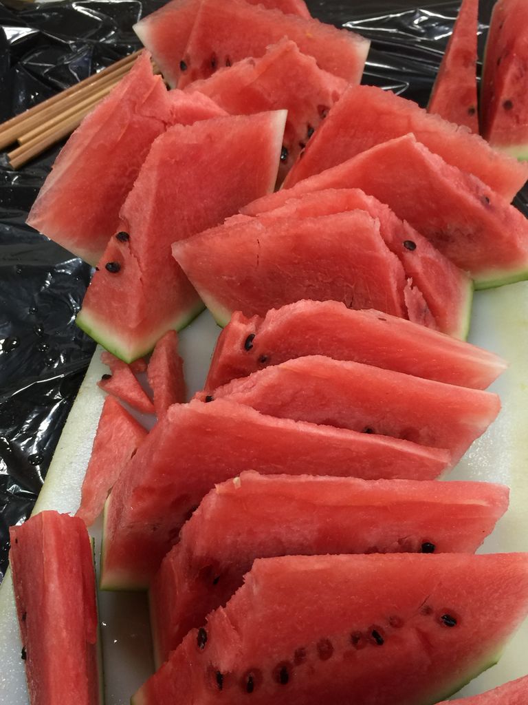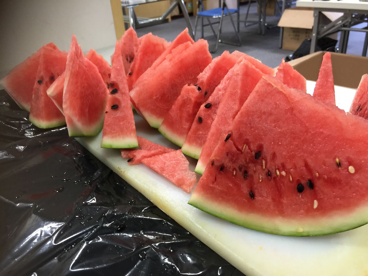 外側が緑色の中身が赤い・・・・赤い・・・物体の差し入れを頂きました♬
