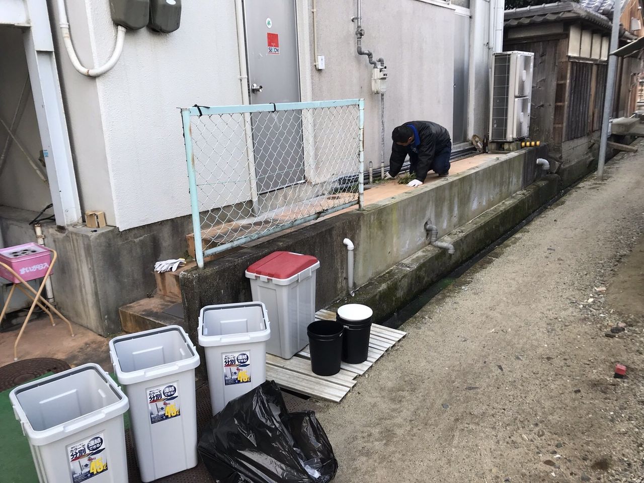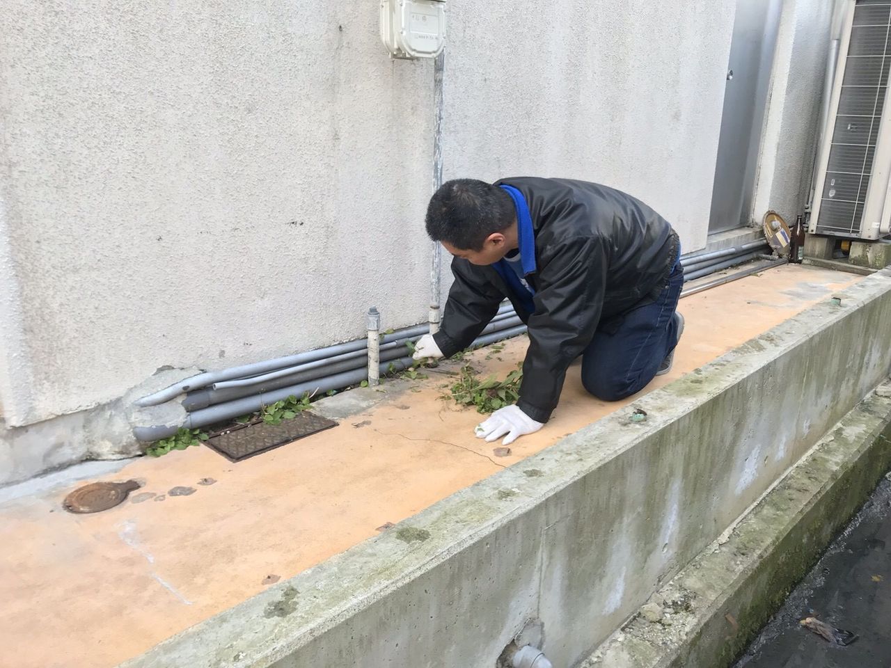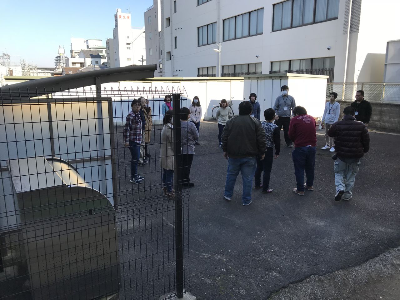 👇会社裏口では、寒い中草むしり作業を一生懸命して頂きました。