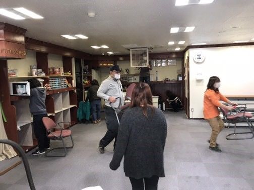 各自、窓拭き・机拭き・椅子拭き・棚拭きなどをして頂きました。