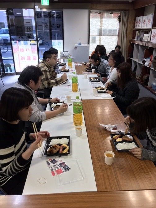 👇丁度、お昼ごろに大掃除も無事終わり、午後から事業所で用意させて頂きました、お弁当を配布させて頂き、キラ恒例毎年行事の「忘年会2017(お疲れ様会)」を開始。