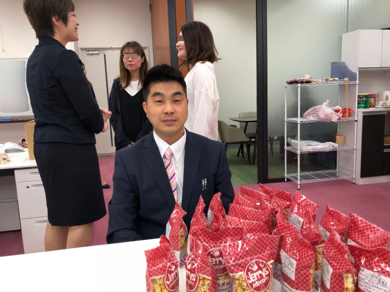 生菓子との事なので、この気温は怖いと判断し、出社してくる従業員のみなさまを順番に私の席に呼ばせて頂き、「Oさんからの差し入れです。」と説明し配らせて頂きました^^