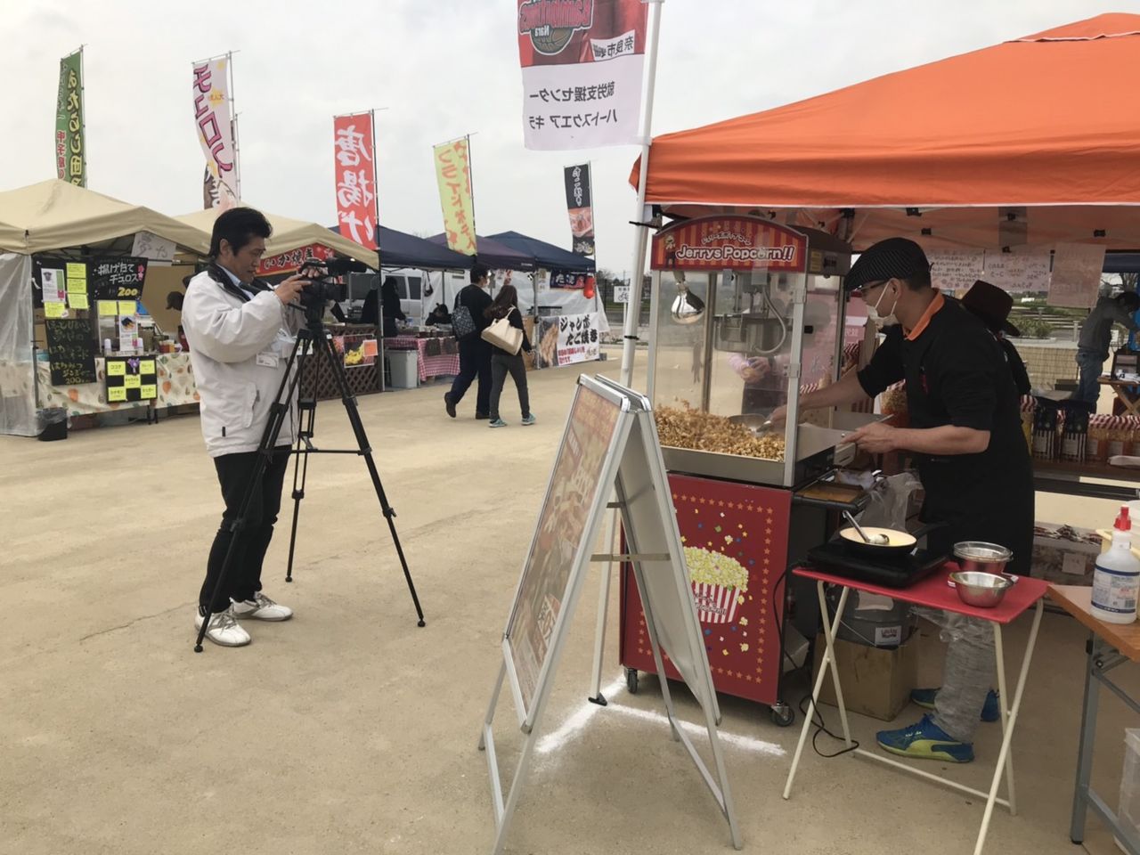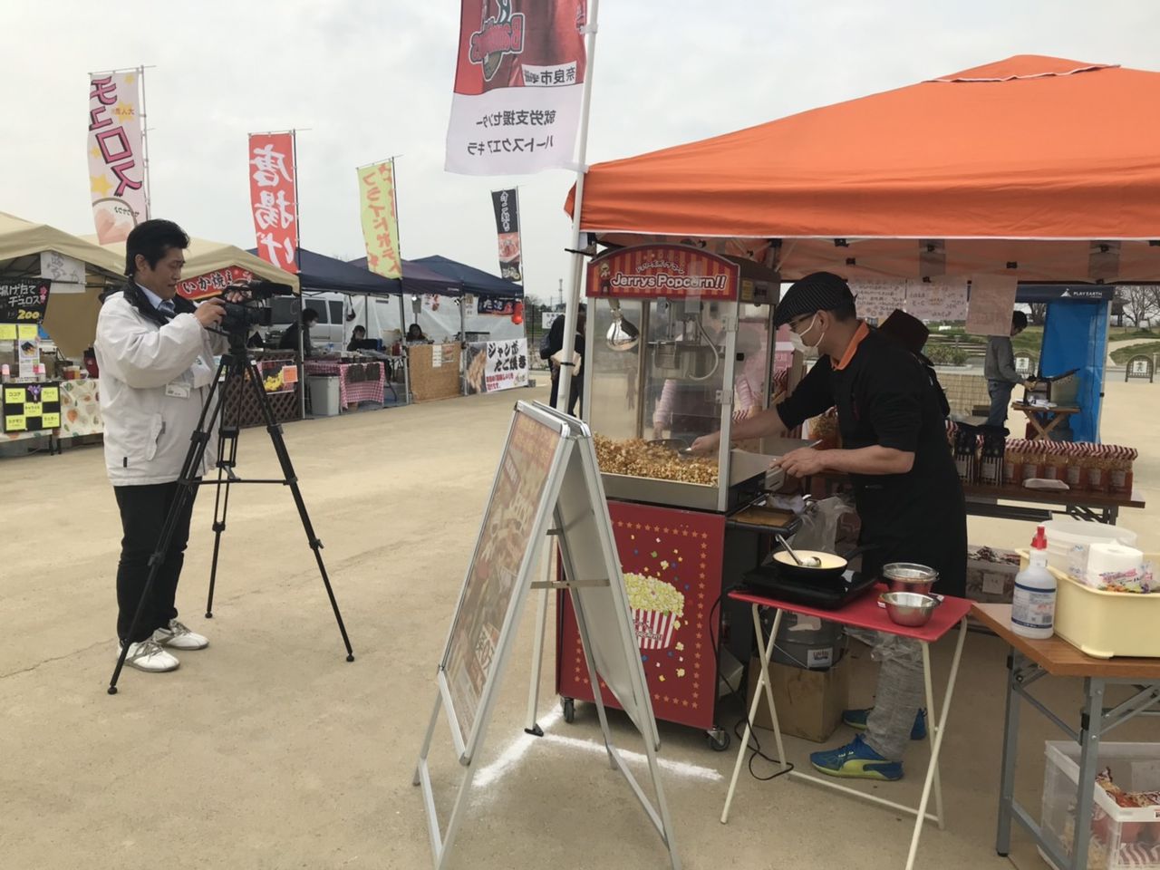 ↑午前中:奈良テレビさんが「さくら祭り」イベントの撮影取材に来場されており、当店も接客風景や